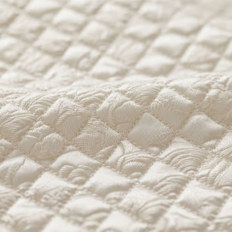 ผ้าลายตารางหมากรุกเลียนแบบผ้าเป็นผ้าระดับไฮเอนด์ที่ทอด้วยเทคโนโลยีแจ็คการ์ดอันประณีต พื้นผิวนำเสนอลวดลายตารางหมากรุกที่ให้ความรู้สึกสามมิติและเป็นชั้นๆ ด้วยกระบวนการแจ็คการ์ดที่เป็นเอกลักษณ์ ผ้าไม่เพียงแต่แสดงเอฟเฟกต์พื้นผิวที่ละเอียดอ่อน แต่ยังเพิ่มผลกระทบต่อการมองเห็นที่ชัดเจน นำเสนอความแวววาวที่ดูเรียบง่ายและหรูหรา ผ้านี้เหมาะมากสำหรับการใช้งานในด้านต่างๆ เช่น กระเป๋าแฟชั่น และการต่อประกบตกแต่งเสื้อผ้า พื้นผิวที่ละเอียดและเอฟเฟกต์สามมิติทำให้เป็นจุดโฟกัสในการออกแบบใดๆ และเหมาะอย่างยิ่งสำหรับการยกระดับเกรดโดยรวมและมูลค่าความสวยงามของผลิตภัณฑ์ ความรู้สึกสามมิติของผ้าช่วยเพิ่มไดนามิกของการมองเห็น ทำให้โดดเด่นในการออกแบบกระเป๋าและเสื้อผ้า โดยเน้นถึงความซับซ้อนและความหรูหราของผลิตภัณฑ์ระดับไฮเอนด์