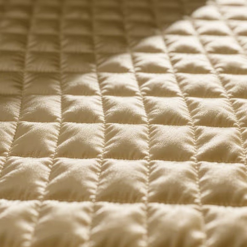 ผ้าเลียนแบบผ้าลายตารางเพชรเป็นผ้าระดับไฮเอนด์ที่ทอผ่านงานฝีมือแจ๊คการ์ดอันวิจิตรประณีต พื้นผิวนำเสนอลวดลายเพชรที่ละเอียดอ่อนพร้อมความรู้สึกสามมิติและชั้นที่ชัดเจน ความมันเงาและเนื้อสัมผัสทำให้ผ้าแสดงความหรูหราแบบเรียบง่าย กลายเป็นตัวเลือกที่สำคัญในการออกแบบแฟชั่นสมัยใหม่ การออกแบบผ้าแจ็คการ์ดอันงดงามไม่เพียงแต่ช่วยเพิ่มรูปลักษณ์ แต่ยังนำความรู้สึกทางศิลปะและความทันสมัยอันเป็นเอกลักษณ์มาสู่ผลิตภัณฑ์โดยรวมอีกด้วย เนื่องจากรูปแบบที่หรูหราและความรู้สึกสามมิติที่แข็งแกร่ง ผ้านี้จึงถูกนำมาใช้กันอย่างแพร่หลายในการประกบกระเป๋าแฟชั่นและการตกแต่งเสื้อผ้า