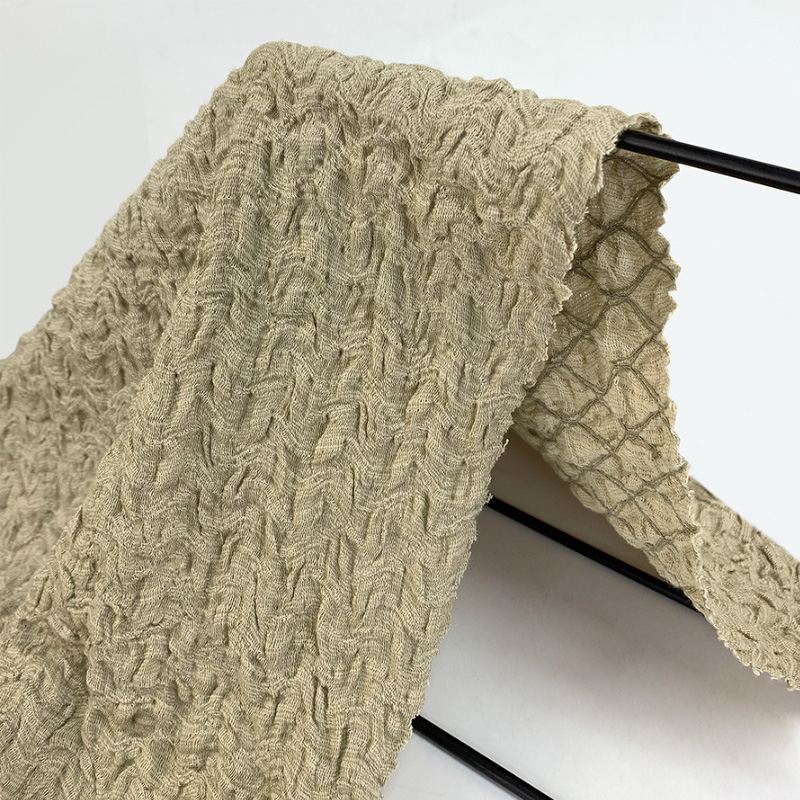 คุณสมบัติหลักของผ้าบับเบิ้ลคือเนื้อฟองเว้าและนูน โครงสร้างนี้ทำให้ผ้ามีความรู้สึกสามมิติและฟูนุ่มที่แข็งแกร่ง มีรูปลักษณ์ที่เป็นเอกลักษณ์ และให้ความรู้สึกที่ทันสมัยและแปลกใหม่แก่ผู้คน มันนุ่มและฟูน่าสัมผัส สวมใส่สบาย และไม่ทำให้ผู้คนรู้สึกอึดอัด