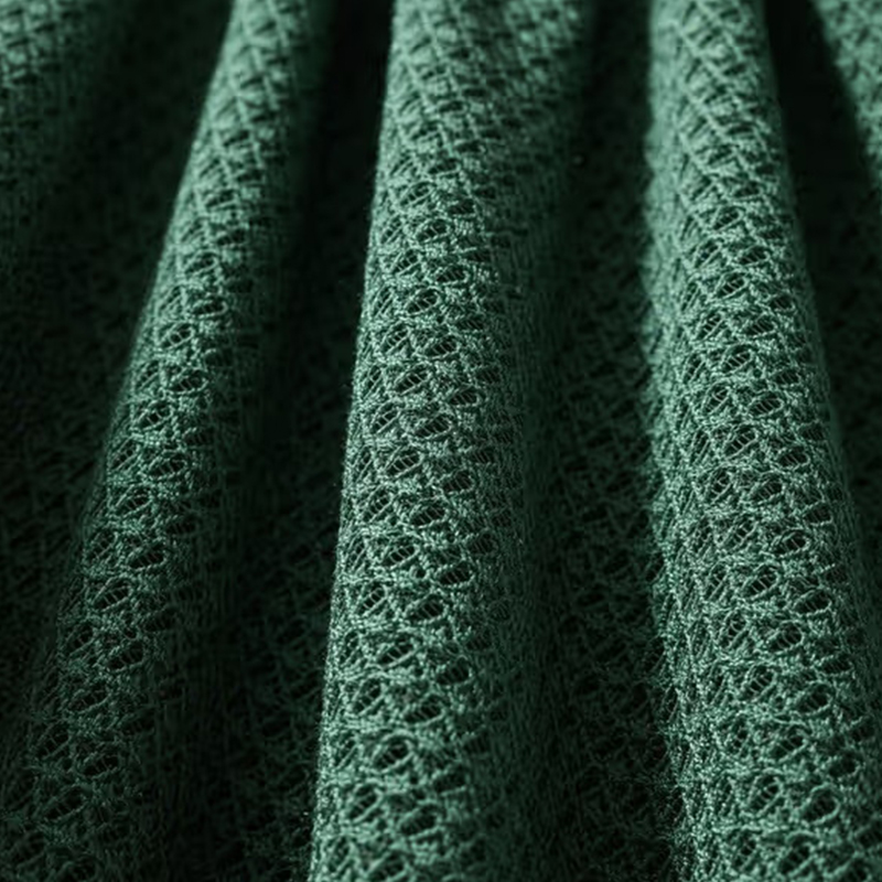 ผ้าโพลีเอสเตอร์ผสมยางยืดเป็นผ้าที่ออกแบบมาเพื่อตอบสนองความต้องการของกีฬา เสื้อผ้าฤดูร้อน อุปกรณ์กลางแจ้ง และชุดลำลอง ผ้านี้ใช้กระบวนการทอแบบผสมผสานที่เป็นเอกลักษณ์ โดยคงคุณสมบัติการระบายอากาศและความชื้นของผ้าตานกแบบดั้งเดิม ขณะเดียวกันก็เพิ่มความแข็งแรงและความทนทานของผ้า พื้นผิวประกอบด้วยรูเล็กๆ ซึ่งไม่เพียงเพิ่มเอฟเฟ็กต์ภาพอันเป็นเอกลักษณ์ให้กับเนื้อผ้า แต่ยังช่วยเพิ่มการระบายอากาศ ช่วยให้เหงื่อระบายออกได้อย่างรวดเร็ว ทำให้ผู้สวมใส่แห้งและสบาย ไม่ว่าจะเป็นการบริโภคแบบเข้มข้นสูงในระหว่างการเล่นกีฬาหรือการสวมใส่ในชีวิตประจำวันในสภาพอากาศร้อน ก็สามารถให้ความสบายได้ตลอดทั้งวัน